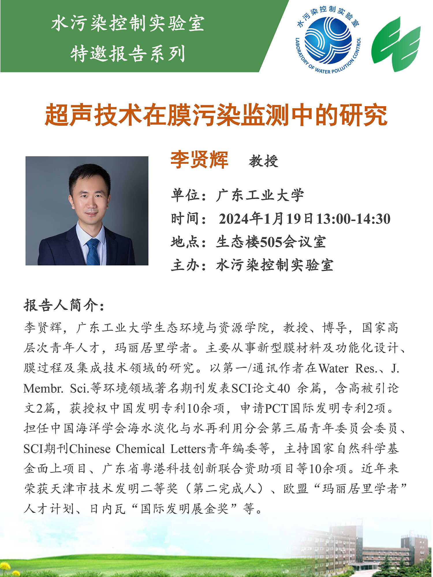 水污染控制实验室特邀报告系列:超声技术在膜污染监测中的研究